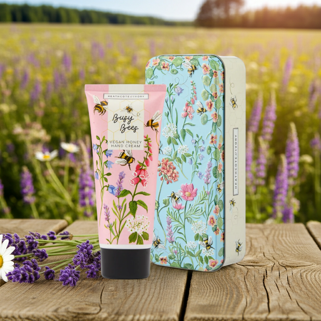 La Crema Mani Orange Blossom & Honey – Busy Bees è un trattamento nutriente e delicato, perfetto per chi ama le fragranze dolci e avvolgenti ispirate alla natura. Racchiusa in una graziosa latta decorata con api in rilievo, contiene una crema mani 100% vegana arricchita con burro di karité, burro di cacao e vitamina E, ideale per lasciare la pelle morbida e protetta.