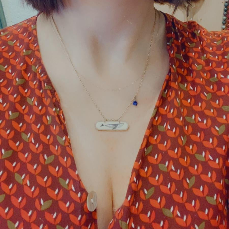 Disegnata e realizzata a mano in Italia, questa collana artigianale unisce delicatezza e ironia marina in un gioiello unico e poetico. Il ciondolo disegnato a mano e smaltato incornicia una balena illustrata in stile vintage, perfetta per chi ama il mare, le storie da raccontare e i dettagli fuori dal comune.