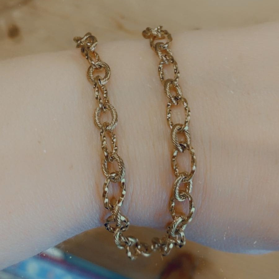 Pezzo fondamentale da avere nella propria collezione, in acciaio inossidabile color oro è un gioiello dallo stile elegante e senza tempo, interamente disegnata e prodotta a Parigi. Leggera ma resistente, dona un tocco sofisticato a ogni outfit, perfetta da indossare singolarmente o con altre collane per un look a strati.